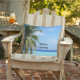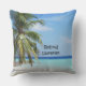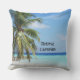 Retired Librarian, palm tree on the beach, outdoor pillow.