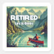 You're retired and the only work you have to do is to paddle your canoe. This vintage retro design is a canoeist paddling a beautiful mountain lake.