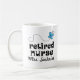 Stylish nursing occupation design says Retired Nurse with cute blue butterfly logo and room for a personalised name.
