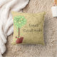 Beautiful Retired Social Worker Pillow, artsy pillow designed using a layered effect of translucent script background and artist drawn potted tree with falling leaves, background colour of pillow is light gold. "Retired Social Worker" on the front. Back of pillow is colour coordinated with artist drawn yellow daises. Makes a memorable and lasting gift sure to be treasured.
