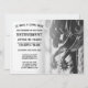 Retirement announcement with old worn and weathered equestrian spurs in vintage style. Gender related text, year, tribute text, date, time, ceremony location and RSVP can be customised.