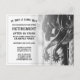 Retirement announcement with old worn and weathered equestrian spurs in vintage style. Gender related text, year, tribute text, date, time, ceremony location and RSVP can be customised.