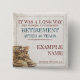 Retirement announcement with old worn and weathered equestrian spurs in vintage style. Gender related text, year, tribute text, date, time, ceremony location and RSVP can be customised.