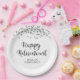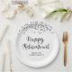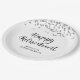 Retirement Black Silver Confetti Script Name Paper Plate