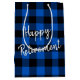 Retirement Blue and Black Buffalo Plaid Medium Gift Bag