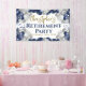 A gorgeous navy and silver balloon retirement party banner. This fabulous design is the perfect way to congratulate someone on their retirement. Personalise with our own custom name. Blue and gold coloured typography and gorgeous navy blue and silver balloons.