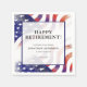 This retirement party paper napkin features a modern American flag background. The red, white and blue design offers custom text for you to add your a name, years of service and the date.