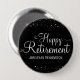 Happy retirement script font and faux foil confetti border party button. Text is easy to adjust. Great for many different retirement party settings.