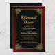 Black retirement dinner party invitation with an ornate gold frame featuring a red ombre outer border to complete the design creating a vibrant invitation for your special occasion.