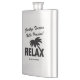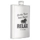 Retirement gift flask Goodbye Tension hello pension. Funny party gift idea for retiring or retired men and women. Tropical palm tree design. Personalise with your message. Make a unique present for colleague, coworker, employee, dad, mum, boss etc. Office humour . Job work related joke. Humourous quote.