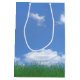 White golf ball in grass with sky background and personalised name for golfer's retirement.