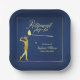 Retirement Golf Party Classic Blue Golden Woman Paper Plate