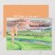 "Elegance on the Greens: Our 'Swinging into Retirement' invitation card captures the beauty of retirement with a graceful woman poised for the perfect swing on a watercolor-drenched golf green. Customise with ease to celebrate the retiree's name, date, and time in style."