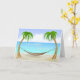 Congratulate the retiree with this lovely greeting card featuring a hammock tied between two palm trees with sand, sea and sky background.