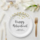 Black and gold theme party plates with a gold confetti border and the title HAPPY RETIREMENT in a modern script font. Personalise it with the retiree's name, number of years of service and the company, school or organisation's name or personal message.