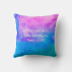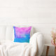 The pillow has an elegant colourful watercolor background with vivid colours: electric pink, blue, and green, along with touches of white.