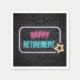 Glowing neon sign on a grungy grey brick wall for a retirement party.
