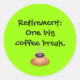 "Retirement: One big coffee break" sticker from MY ORIGINAL ARTWORK at www.zazzle.com/virginia5050 http://www.zazzle.com/i_love_template_postage-172008237149036709 http://www.zazzle.com/surrealistic_fish_artwork_speaker-166322133275425626 http://www.zazzle.com/life_begins_at_retirement_sticker-217796315800186075