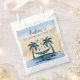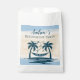 Lovely beach theme retirement party favour bags. Design comprising of a watercolor coastal sandy beach and blue sea background with palm trees hammock and birds. The perfect party table decor for a surprise retirement party. All text can be customised then personalise with a name , event and date. Would also be great for birthdays, wedding anniversaries and many other celebrations .