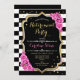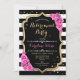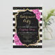 Retirement Party - Black White Stripes Pink Roses Invitation