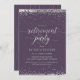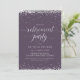 This elegant and festive retirement party invitation features silver (simulated foil) confetti with matching letters that say "Retirement Party" in an beautiful script font. The background colour is a shade of purple, but can be changed to any colour of your choice. Customise the invite with your own information - an easy and simple way to create a personalised card. The back side of the card features a matching silver dotted line pattern - again with a purple background that can be customised to any colour of your liking. A simple and elegant way to invite guests to celebrate a retirement.