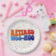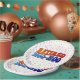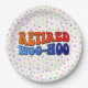 Colourful retirement napkins with groovy text and confetti. Custom party decor idea.