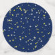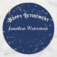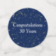 Happy Retirement text on a dark blue background with stars. Change the name to the lucky retiree's name on the large circle, change the years on the medium circle.