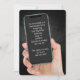 Cellphone in hand on black rock background for a retirement party.
