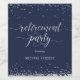 These elegant and festive retirement party wine labels features silver (simulated foil) confetti with matching letters that say "Retirement Party" in a beautiful script font. The background colour is navy blue, but can be changed to any colour of your choice. Customise the labels with your own information - an easy and simple way to create personalised decor.