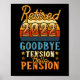 Vintage Retirement Retired 2022 Goodbye Tension Hello Pension