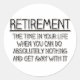 Retirement, the time in your life when you can do absolutely nothing and get away with it,  hilarious retirement quote. This cute and funny retirement saying that would make a humourous retirement gift for a retirement party.