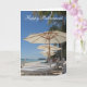 Photographic card of beach umbrellas and lounge seats - perfect for holidays, farewells & retirements - customise front & inside message.