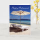 Photographic card of a beach umbrella and lounge seats - perfect for holidays, farewells & retirements - customise front & inside message.