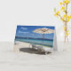 Photographic card of a beach umbrella and lounge seats - perfect for holidays, farewells & retirements - customise front & inside message.