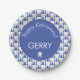 Fun dentist retirement party plates. Customise the plates by adding the recipient's name and message of your choice. Retirement party plates printed with white teeth on blue.