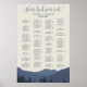 This retreat to the mountains alphabet seating chart poster is perfect for a modern wedding. This sign can be used to organise your guests alphabetically or by table number. The design features a serene blue watercolor mountain range with a forest of evergreen trees in the foreground. This wedding poster includes enough room for up to about 120 guests. Make room for more (or less) guests by clicking the "customise" button and decrease or increase the size of the font. In addition to the placement of each guest, personalise this sign with the names of the bride and groom and the wedding date.