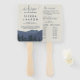 These retreat to the mountains wedding program fans are perfect for a modern wedding. The design features a serene blue watercolor mountain range with a forest of evergreen trees in the foreground. Include the name of the bride and groom, the wedding date and location, thank you message, order of service, and bridal party. Order your programs assembled or non-assembled.