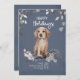 This cute watercolor design features a cute little Golden Retriever puppy sitting on a bed of wildflowers, winter greenery and foliage and the words, Happy Holidays. Customise with your family name, year and your message on the back.