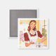 Created from a vintage 1950s illustration of a woman in a kitchen holding a pan. Retro cool!