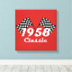 Retro 1958 Classic Black & White Checked Race Flag Canvas Print