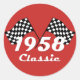Retro 1958 Classic Black & White Checked Race Flag Round Sticker