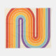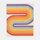 This artwork channels a retro graphic spirit, forming the letter‑like curve with parallel bands of red, orange, yellow, light blue, teal, and purple. The layered arcs flow in harmony, evoking the bold optimism of 1970s design. Set against a soft beige background, the vibrant rainbow palette stands out with clarity and rhythm. The composition balances simplicity and dynamism, creating a timeless visual that feels both nostalgic and modern.