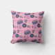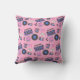 Retro blue and pink Vinyl Records, boomboxes, video gaming and cassette tapes birthday pillow.