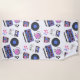 Retro blue and pink Vinyl Records, boomboxes, video gaming and cassette tapes nostalgic beach towel.