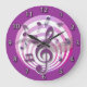 Retro 3D Effect Pink Musical Notes Large Clock