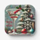 Retro 50s Cranberry Snowflake Christmas Martini Paper Plate