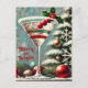 Retro 50s Cranberry Snowflake Christmas Martini Postcard
