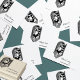 Promote your business with this beautiful, retro dressed woman on a rubber stamp! Print on cards or envelopes to brand your company! Customisable templates to suit your needs.