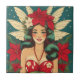 Retro 50s Tropical Christmas Pin-Up Girl Tile
