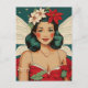 Retro 50s Tropical Christmas Pin-Up Starlet Postcard